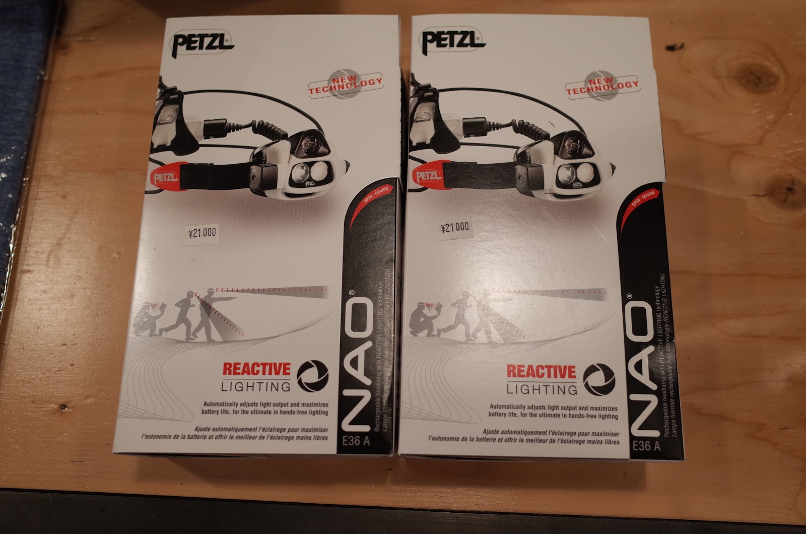 続いてこちらもオープン時取扱のなかったライト類。Black Diamond、PETZL、GENTOS等揃いました。