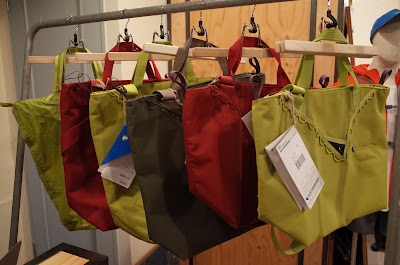 Run boys! Run girls!的なランニングライフ提案のアイテムとしてはこちら。環境に対する配慮とデザイン性が高いスウェーデンのブランド、KLATTERMUSEN(クレッタルムーセン)のトートバッグ類。すべて100%リサイクルナイロンです。右2つが13ℓのBOR(¥7,875-)、中央3つが22ℓのBAGGI(¥8,400-)、共に口が大きくものの出し入れがしやすいです。BAGGIはトレランザックと着替えを余裕でいれられるサイズ。トレランの行き帰りをお洒落にしたい人にオススメです。一番左のSETKA(¥6,825-)はリップストップのシルナイロンで軽く、普通のトートバッグとして使ってももちろんよし、それ以外にも遠征時にザックのインナーで衣類を収納したり、日常生活でランドリーバックや買い物袋に使ったりかなり多機能に使えると思います。写真では隠れちゃってますけど、個人的にはかなりおすすめ!こういうアイテムを自由に使って、型にはまらずちょっと洒落たランニングライフを是非楽しんでほしいです。