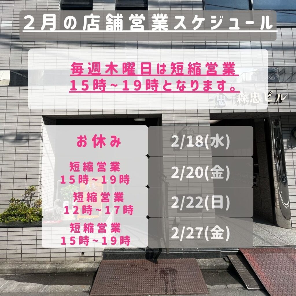 2月の店舗スケジュールのお知らせ