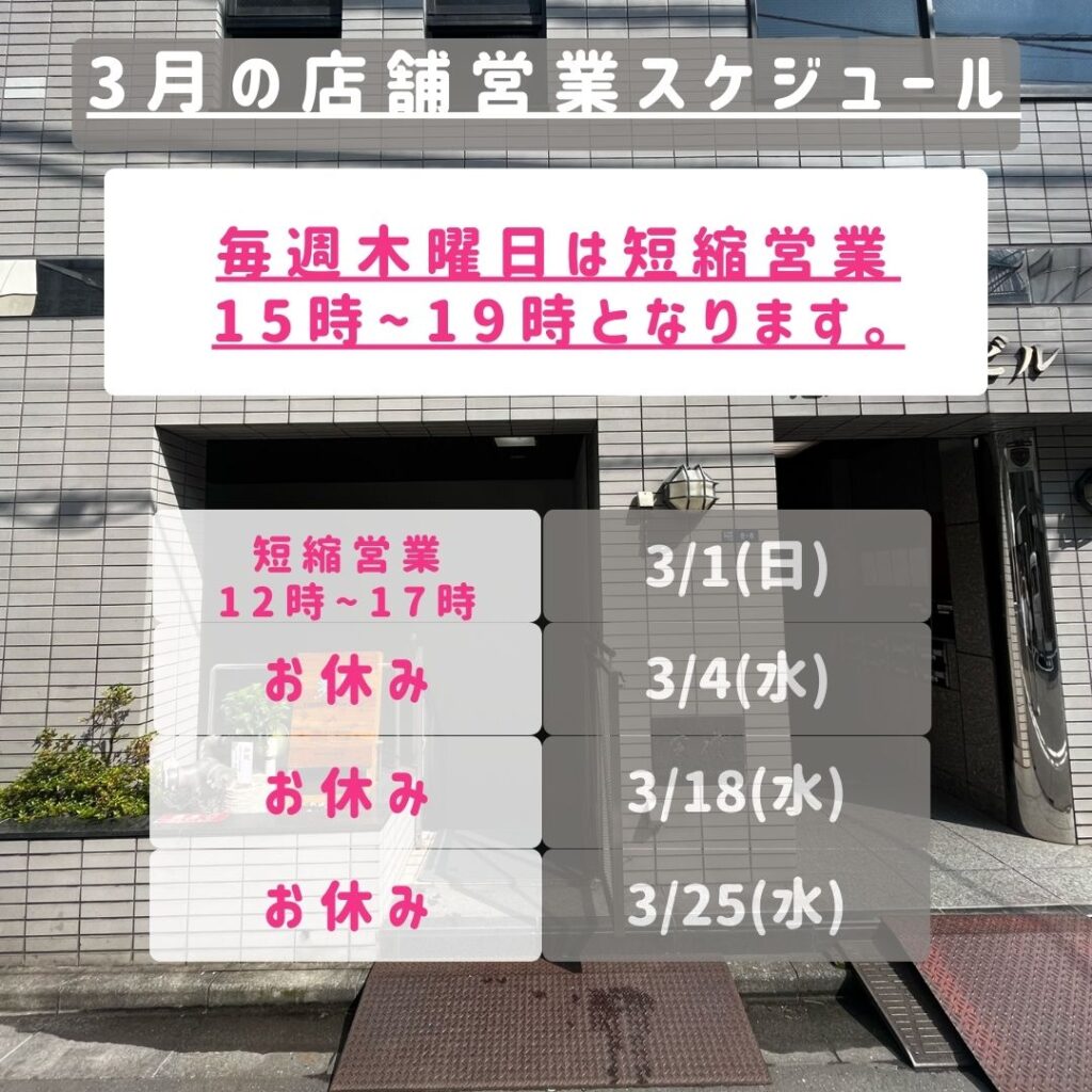 毎週木曜日の19時閉店に加え、何日か短縮営業・お休みとなります。