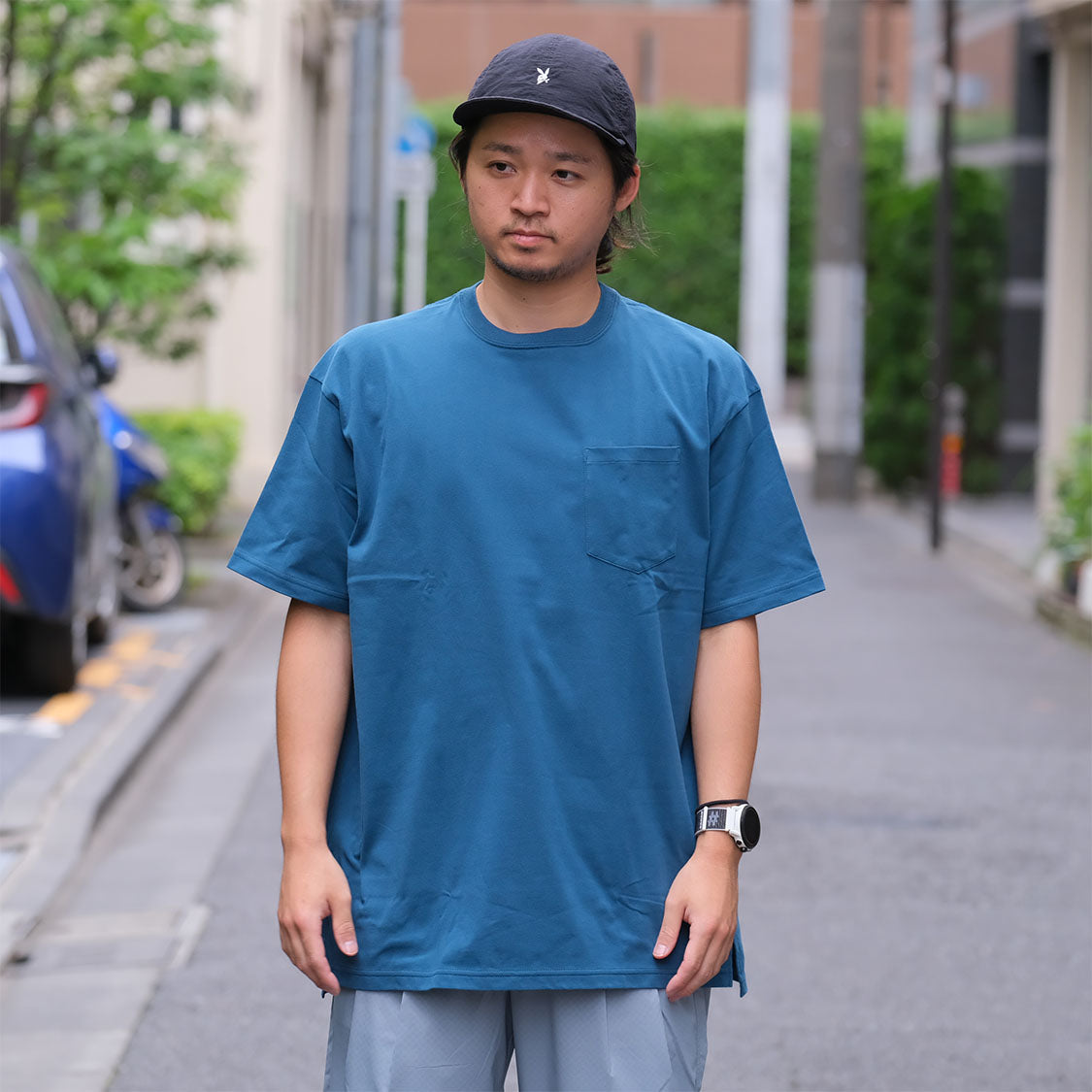でね、着て生活をしてみて思いました。「このTシャツ、やっぱり汗抜けいいな」って。生地の厚みが絶妙と書きましたが、と言って目が荒いわけではない、なのに通気性がいいんですよね。結果としてコットンTシャツを着て汗ばんだ時のあのジメッとした感じになりにく、めちゃくちゃ湿度の高い今の時期にも快適に着られます。